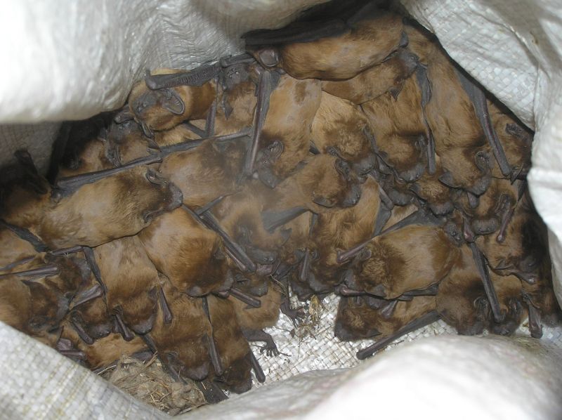 Практично усі види рукокрилих нашої фауни занесені до Червоної книги України та знаходяться під охороною декількох міжнародних конвенцій. Протягом останніх десятиріч спостерігається значне зниження чисельності їх популяцій не лише в Україні, а й у світі загалом. Причин такої ситуації є багато. Але найголовнішими є використання пестицидів ( хімічних препаратів для боротьби з шкідниками сільськогосподарських культур), зменшення кількості придатних сховищ внаслідок освоєння печер, вирубування старих дуплястих дерев та деградація біотопів загалом. Як наслідок, кажани позбавляються кормової бази та укриття. Тому пам’ятаймо, що втручатися у життя цих тварин зовсім небажано! Це може призвести до вимирання цілих колоній. Якщо з приходом весни на ваших приватних територіях (у сільськогосподарських приміщеннях, на горищах тощо) оселяться кажани, не панікуйте і не спішіть їх звідти вилучити. Оскільки вони оселяються тільки там, де їм найбільше підходять мікрокліматичні умови сховища. Не турбуйте їх, будь ласка, у період репродукції та вигодовування малят. Краще дочекайтеся осені, коли вони покинуть сховище і тоді проведіть запобіжні заходи щодо їх оселення у тому ж приміщенні на наступний рік. Поставтеся з розумінням до беззахисних тварин! Будьте уважні не лише до себе, а й до природи! На фото зимова колонія Nyctalus noctula (Schreber, 1774). Вилучені у місті Галич внаслідок реконструкції балкону житлового будинку, тварини були випущені в дику природу. Науковий співробітник Галицького НПП Рарик Мар’яна.