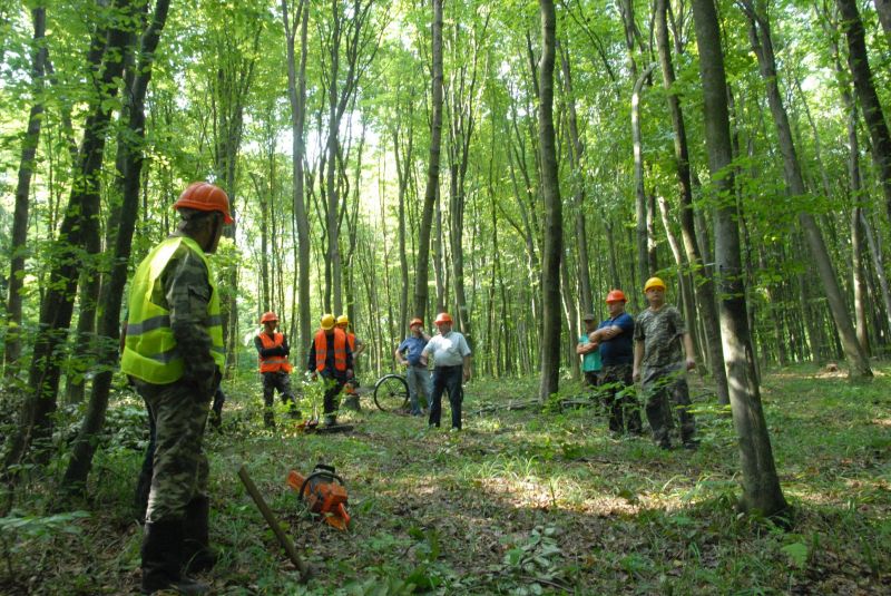 Лісосічні роботи – це категорія надзвичайно травмонебезпечних робіт, за рівнем травмонебезпечності вона знаходиться на одному рівні з роботами у вугільній промисловості. Професію «Лісоруб» у всьому світі вважають хірургом лісу, адже з правильним підходом до виконання робіт, лісовий організм функціонує повноцінно. Професія «Лісоруб» міжнародною спільнотою визнана у всьому світі однією з найнебезпечніших за ступенем виробничих ризиків та однією з найважчих за умовами праці і входить у десятку найнебезпечніших професій у всьому світі. Водночас саме ця професія забезпечує все людство найнеобхіднішим матеріалом – це деревиною, яка використовується в багатьох галузях всіх країн. 15.08.2018 року у Галицькому НПП відбулися практичні заняття із лісорубами 6 розряду (вальниками лісу) з демонстрацією відеороликів звалювання дерев, обрізки і обрубки сучків, розкряжування деревини, трелювання деревини, навантажування-розвантажування деревини з послідуючим виконанням ними на лісосіці Блюдниківського лісництва по даних видах робіт практичних занять. У практичних заняттях взяли участь лісоруби 6 розряду (вальники лісу) Блюдниківського, Галицького, Крилоського і Бурштинського лісництв, які продемонстрували свої вміння і навики, а також лісничий і майстер з охорони природи Блюдниківського лісництва, голова профспілкового комітету Галицького НПП, служби охорони праці Галицького НПП і Івано-Франківського ОУЛМГ. Метою проведення даних практичних занять з лісорубами є запобігання виробничому травматизму, адже найціннішим є тільки людське життя. Служба охорони праці Галицького НПП