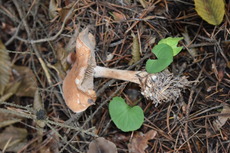 Ось така табличка встановлена біля садиби Галицького НПП і попереджає про розташування на цьому місці популяції рідкісного виду грибів – білопавутинника бульбистого, який внесений до Червоної книги України. На жаль, кожного року ми спостерігаємо неприємну картину, а саме, знищення плодових тіл цього гриба людьми, при чому, за два метра біля таблички. Як бачимо, екологічна свідомість наших людей попри намагання спеціалістів з екоосвіти все ще на дуже низькому рівні. І як не можна поки що відговорити людей від спалювання сухої трави, так само важко переконати їх про шкідливість і неприпустимість знищення неїстівних та отруйних грибів. До речі, кожного року недалеко від цього місця під березою плодоносять червоні мухомори. Їх нещодавно теж хтось знищив, очевидно від нічого робити. Будь ласка, не будьте варварами, не знищуйте гриби, які вам не потрібні. Їх можуть з’їсти дикі тварини. Гриби приносять величезну користь лісовим екосистемам як симбіонти з деревами та як редуценти. І взагалі, ліс не був би таких красивим без грибів (і тих же мухоморів).